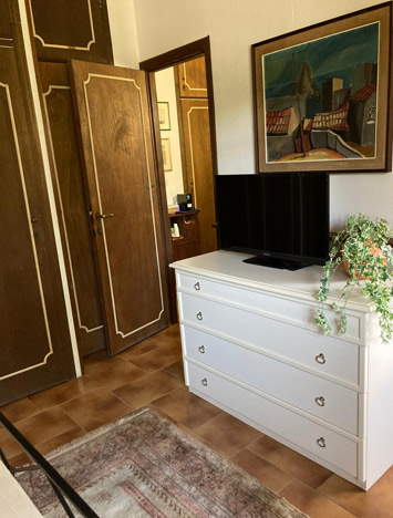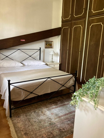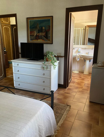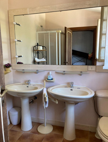 Bella camera matrimoniale ampia e luminosa arredata con cura in stile rustico moderno, situata al primo piano con finestra con affaccio sul giardino, dotata di un piccolo frigorifero, TV a schermo piatto, Wi-Fi e con un bel bagno con doppi lavabi, bidet, wc, asciugacapelli e doccia. Pronta con suoi set da camera, set da bagno e la possibilità di farsi un caffè con una N’espresso in dotazione all’entrata comune delle camere.